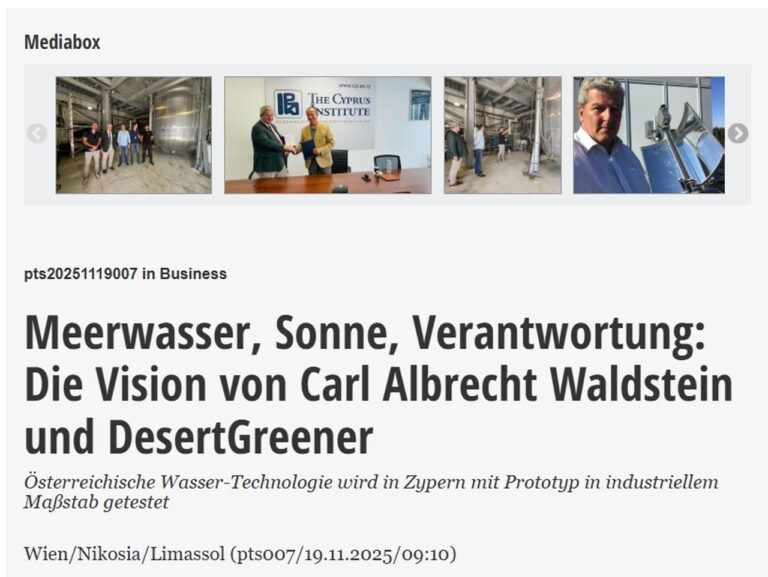 Medalha Viktor Kaplan para o DesertGreener: o maior prémio austríaco de inovação para a tecnologia da água